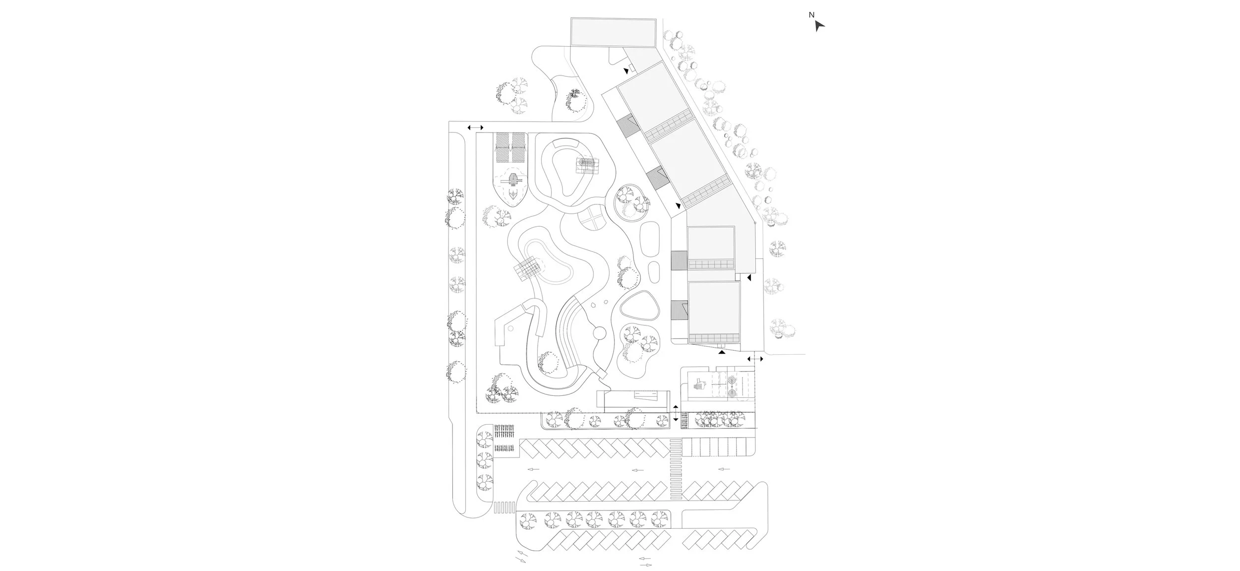 Flexible pedagogical classrooms, Multipurpose rooms, Central common area, Office and administrative area, stroller rom, natural light