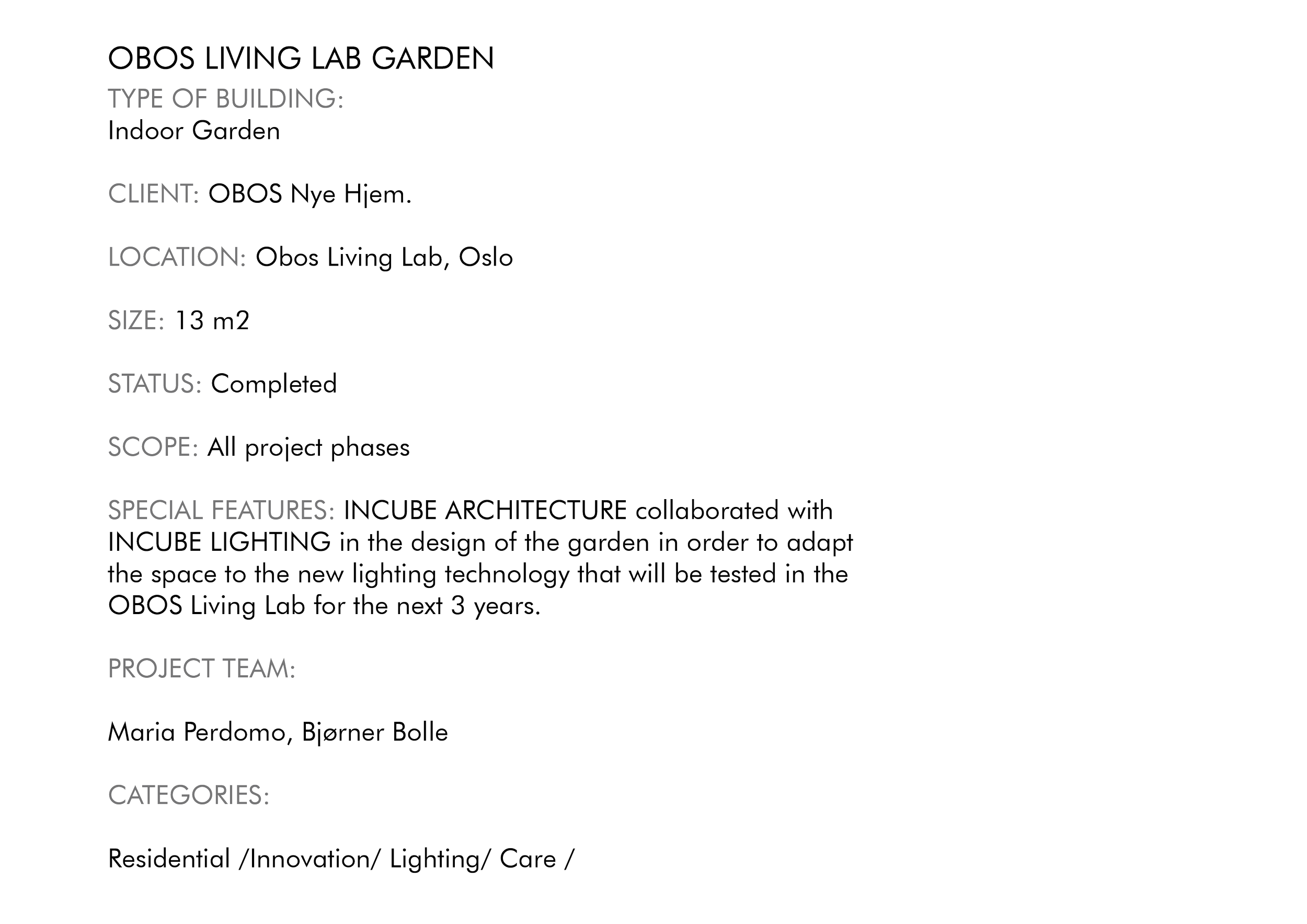 INCUBE ARCHITECTURE collaborated in INCUBE LIGHTING in the design of the garden in order to adapt the space to the new lighting technology that will be tested in the OBOS Living Lab in the next 3 years.
